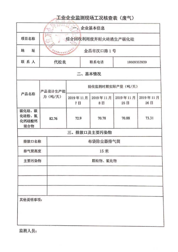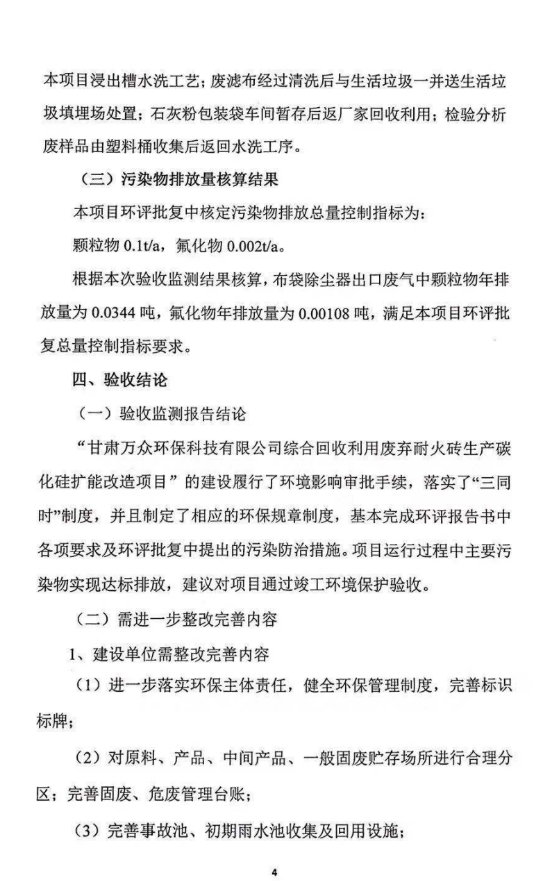 甘肃环保科技有限公司综合回收利用废弃耐火砖生产碳化硅扩能改造 项目竣工环境保护验收报告