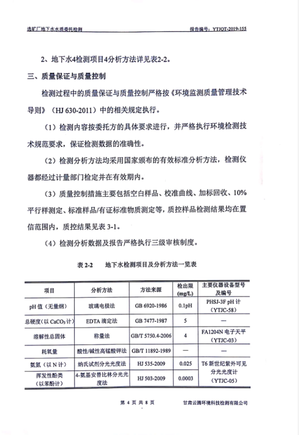 | 挥发性酚类(以苯酚计) | 0.0019 | 0.0015 | 0.0009 | 0.0018 | ≤0.002 |