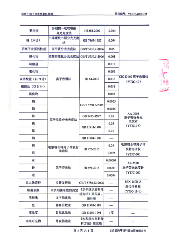 | 砷 | 0.0003L | 0.0003L | 0.0003L | 0.0003L | ≤0.01 |