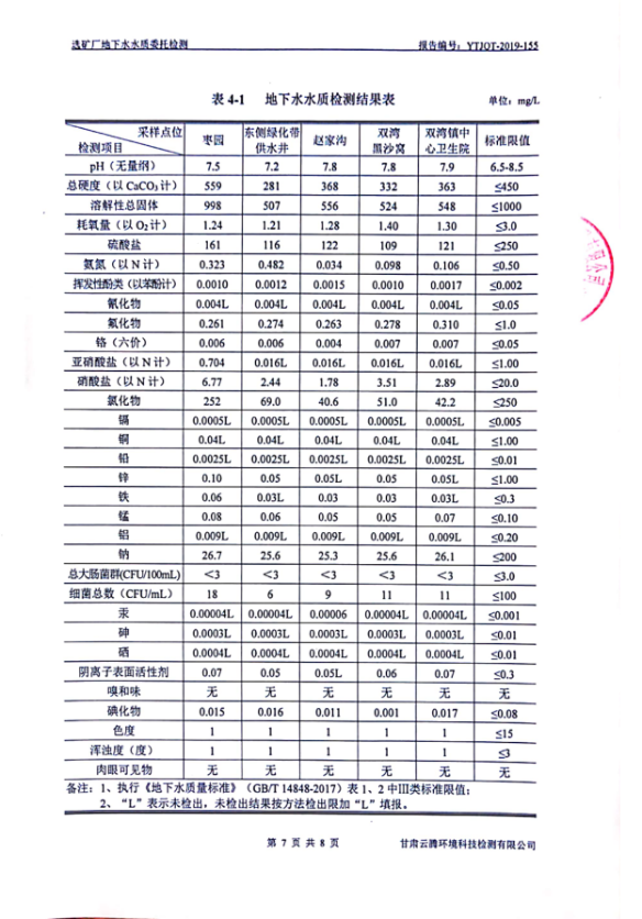 | 氰化物 | 0.004L | 0.004L | 0.004L | 0.004L | ≤0.05 |